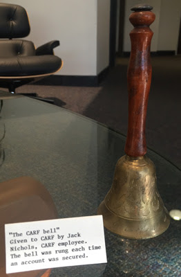 An engraved brass bell with a wooden handle measuring six inches high has earned fame in CARF lore, because it was jangled in the office each time a survey application was received. The bell was brought to CARF by Associate Director Jack L. Nichols, who continued his association with CARF as a surveyor for Employment and Community Services until March 2016.
